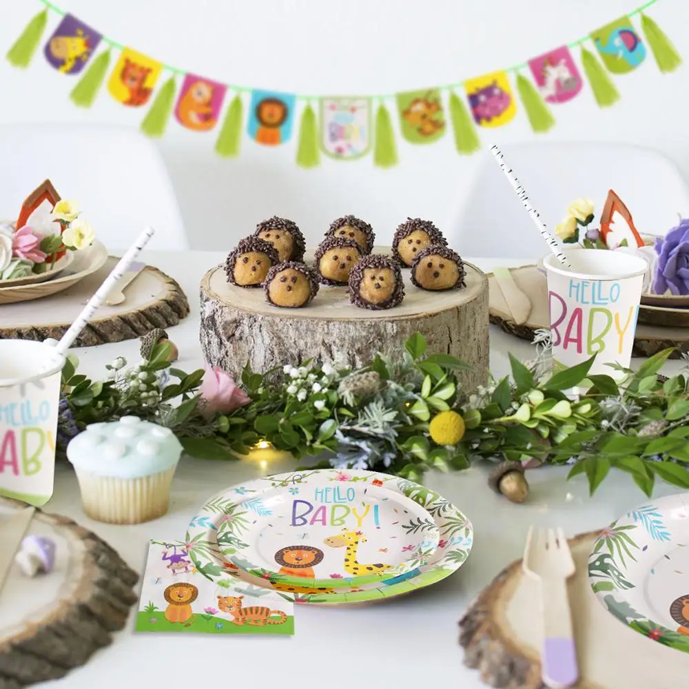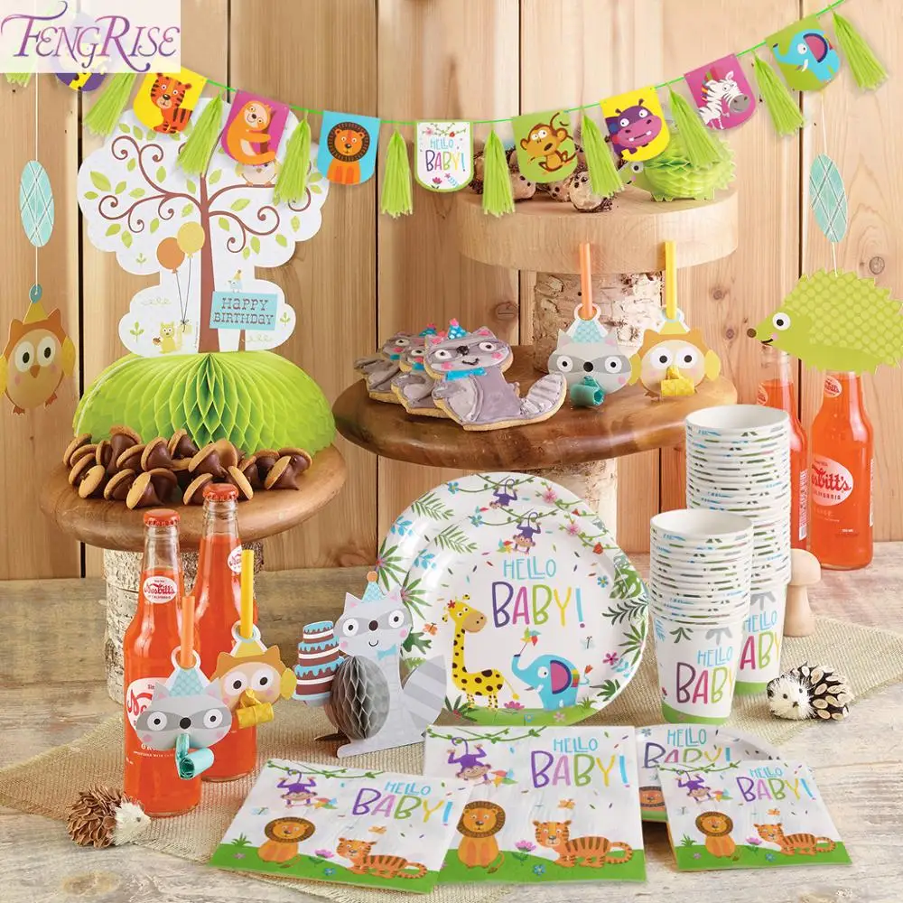 Images of FENGRISE Jungle Animals DisposableTableware Set Safari Party Supplies Hello Baby Paper Plate Boy Birthday Party Decoraions kids :
